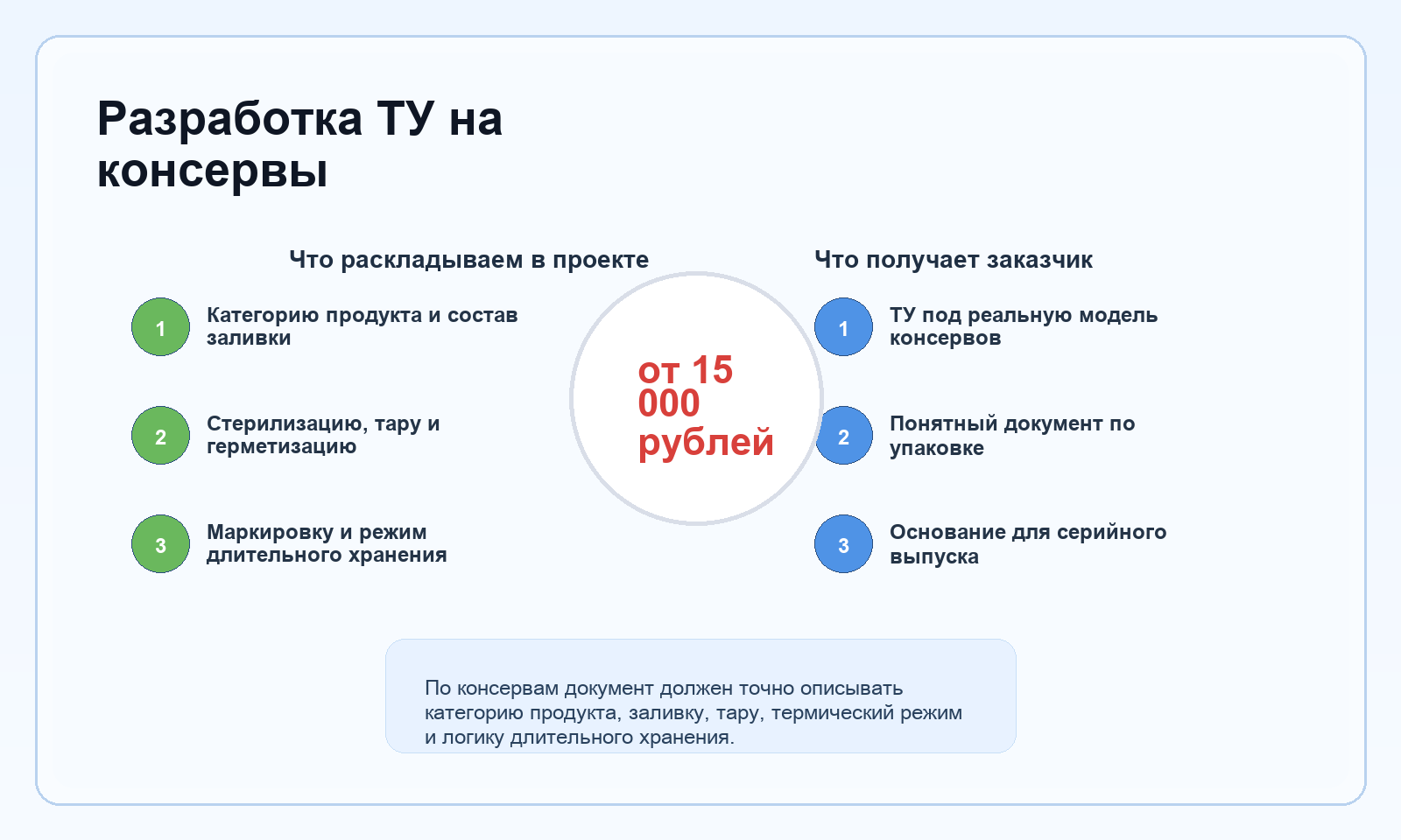 Результат этой работы — документ, который держит в одном контуре продукт, банку, режим обработки и длительное хранение. Для консервов это принципиально важнее, чем формальное совпадение по названию товара.
